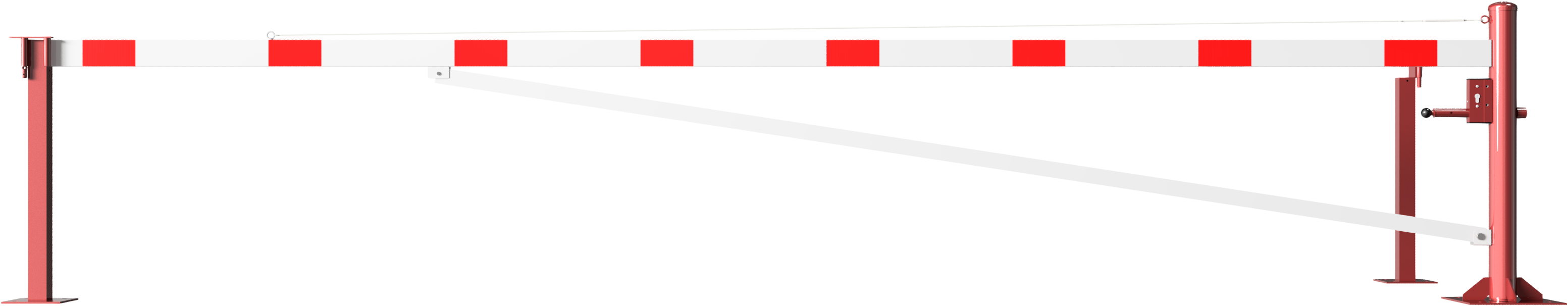 Schrankenarm: Aluminiumrohr 100x50mm, weiß beschichtet mit rot reflektierenden Streifen