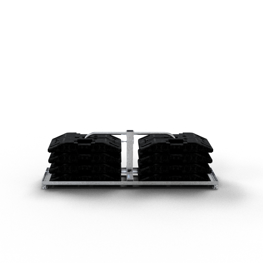 jeweils 4 Fußplatten pro Seite stapelbar und mit einem